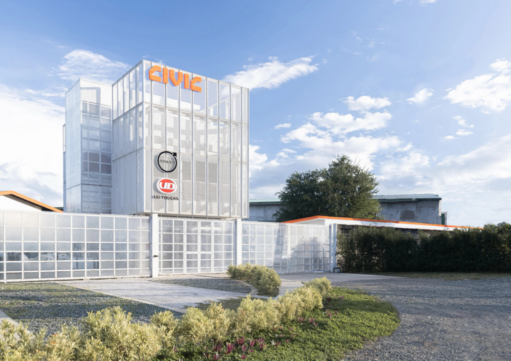 Informed Works reimagines a service yard for heavy machinery as both workplace and spatial display, using porous layers and framed site views to soften its industrial character