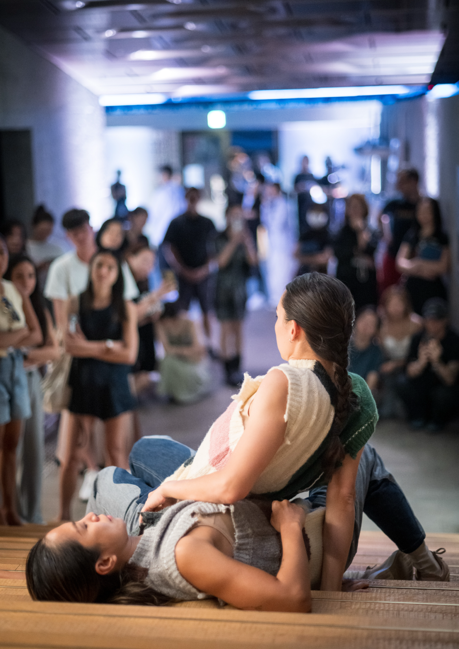 When the work is placed in new spatial contexts, we adapt to the site’s architecture while maintaining the challenge to fixed perspectives. The audience is given autonomy in how they choose to watch. Depending on their position, spectators may experience distortion or disorientation when viewing the work up close, while becoming attuned to subtle details such as breath, muscular effort, and emotional tension—producing resonant, in-the-moment sensations. From a higher vantage point or greater distance, the audience may instead perceive a broader visual composition, allowing a narrative to emerge more clearly.