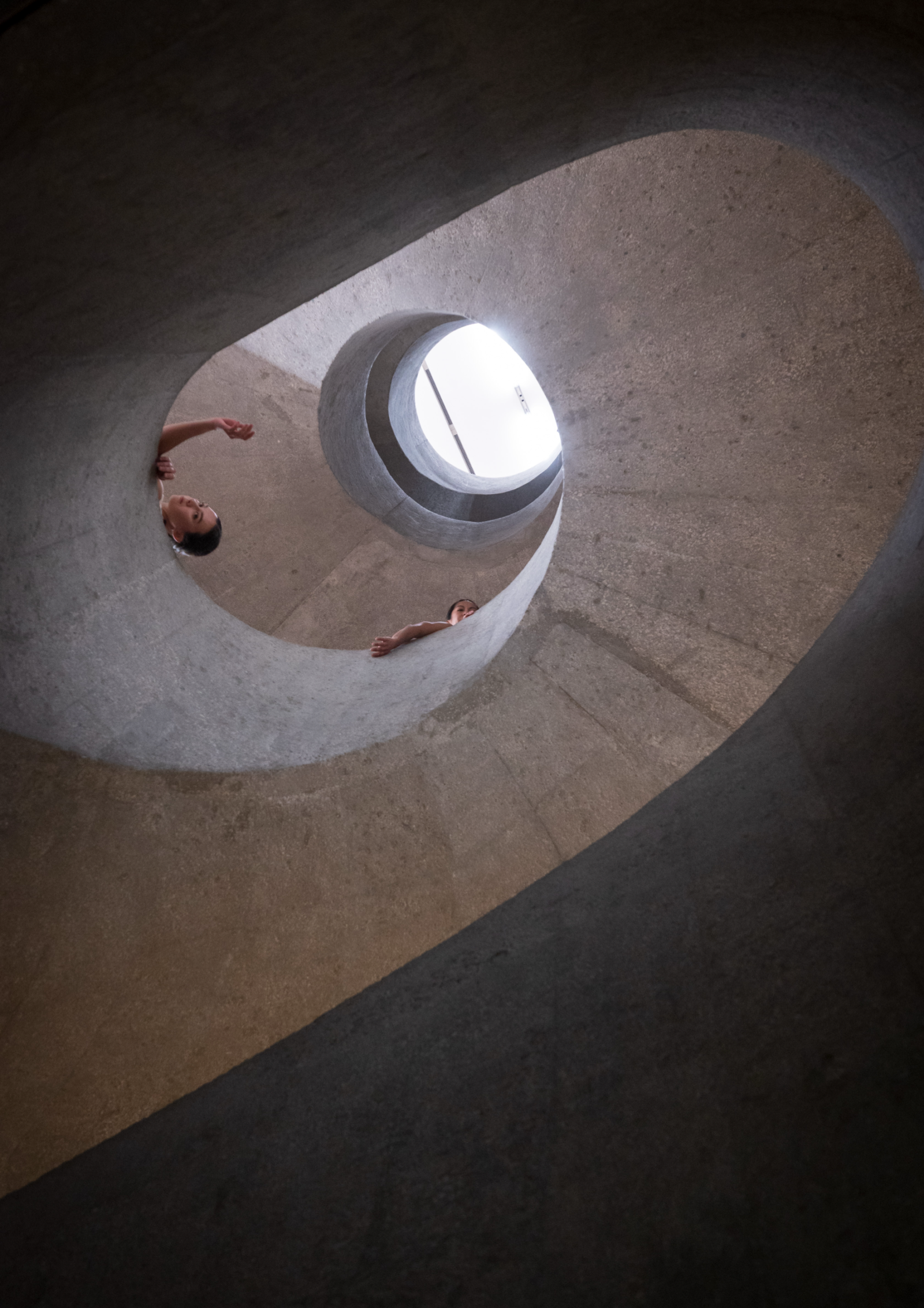 Sylvie Cox, artist, Dandelion Scream: The site’s architecture is integral to the choreography, serving as a concrete, urban counterpoint to the organic materiality of our bodies. It also fundamentally shapes how the work is perceived. The spiral staircase disrupts the convention of frontal viewing, inviting spectators to encounter the performance from multiple levels, positions, and degrees of proximity.