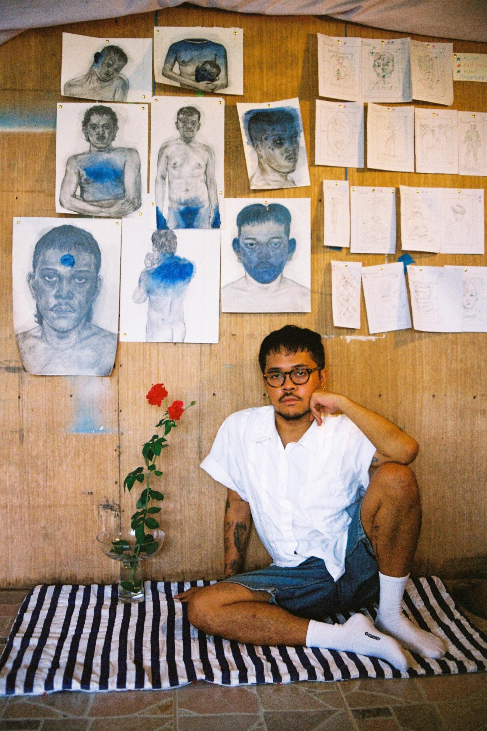 Originally, Ginoe intended for the artworks to simply have himself as the subject alongside a plant. However, he felt like his interaction with plants was more complicated than that. It became less about a side-by-side comparison with his life and the plant but more about the significance of the plant, the metaphysical and metaphorical relationship he shares with the memory of it.