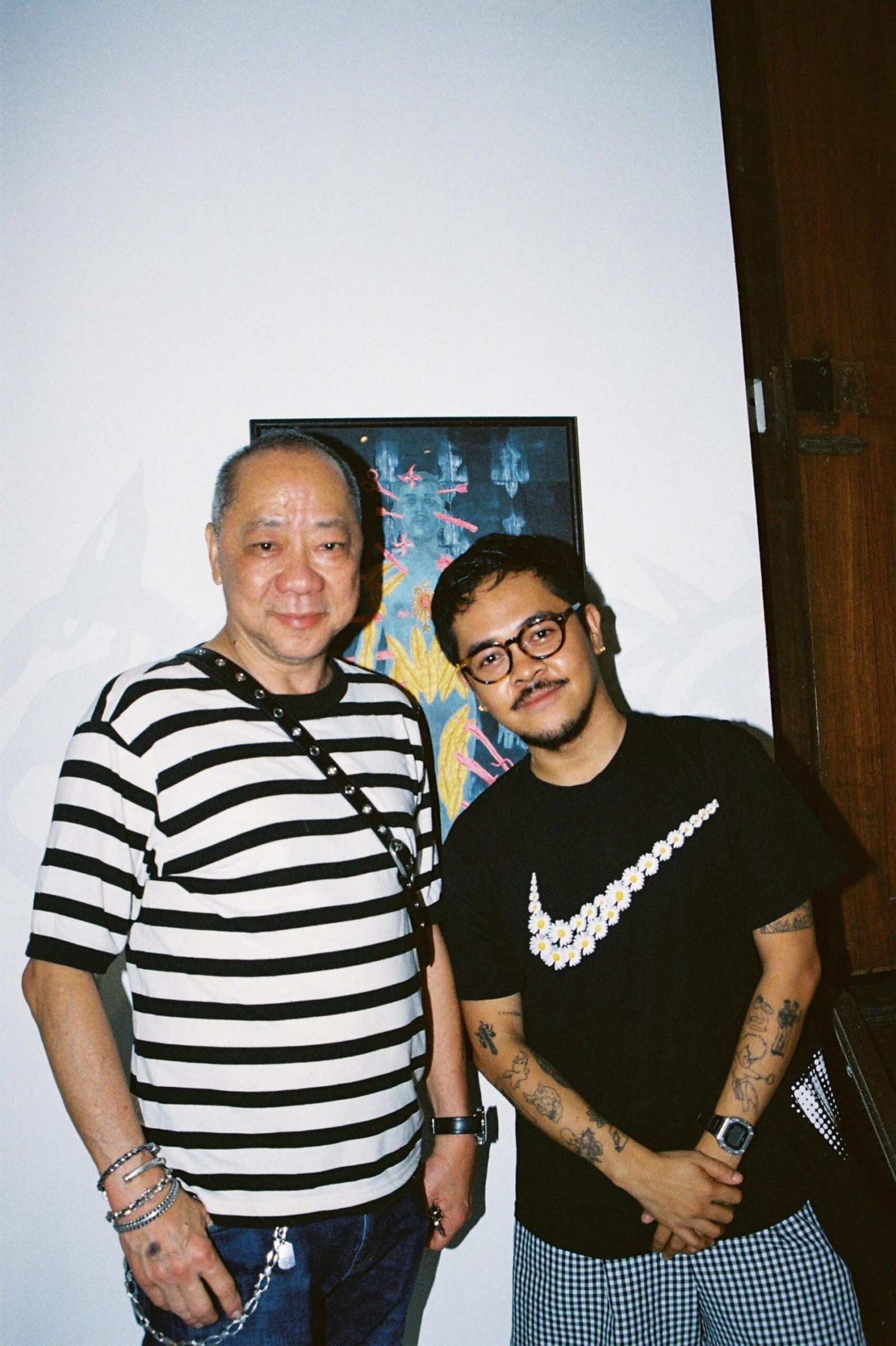 Left: Ginoe at his home studio while working on Bayotany. Photo by Inah Mara. Right: Renowned Bacolod artist Charlie Co with Ginoe. Photo by Inah Mara.