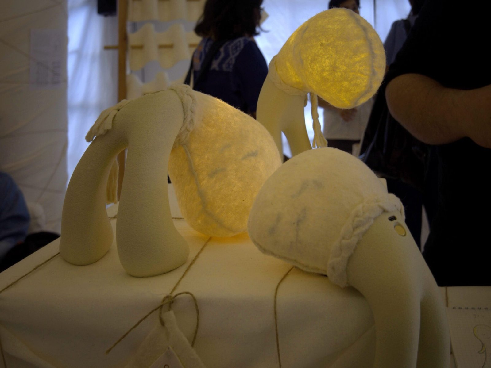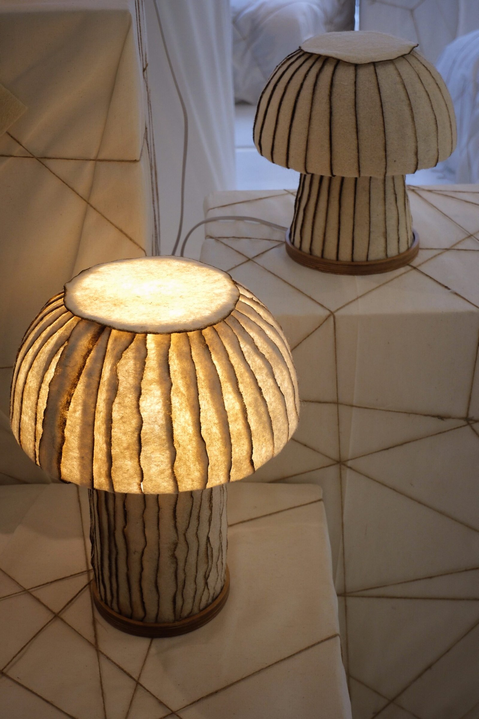Jasser Aguila, designer of Kabu lamps: My work is a sculptural lighting collection called Kabu Lamps, inspired by mushrooms and other organic forms. I used Hiblafelt as the main material, cutting it into strips, layering them by hand, and shaping them into soft, rounded forms. There was opportunity to bring about more depth or character to this already beautiful material. I thought of burning it. Just as we do with Filipino food, I borrowed flavors to add texture to the fabric. The process was very intuitive; I let the material guide the final shape, rather than forcing it into something too controlled.