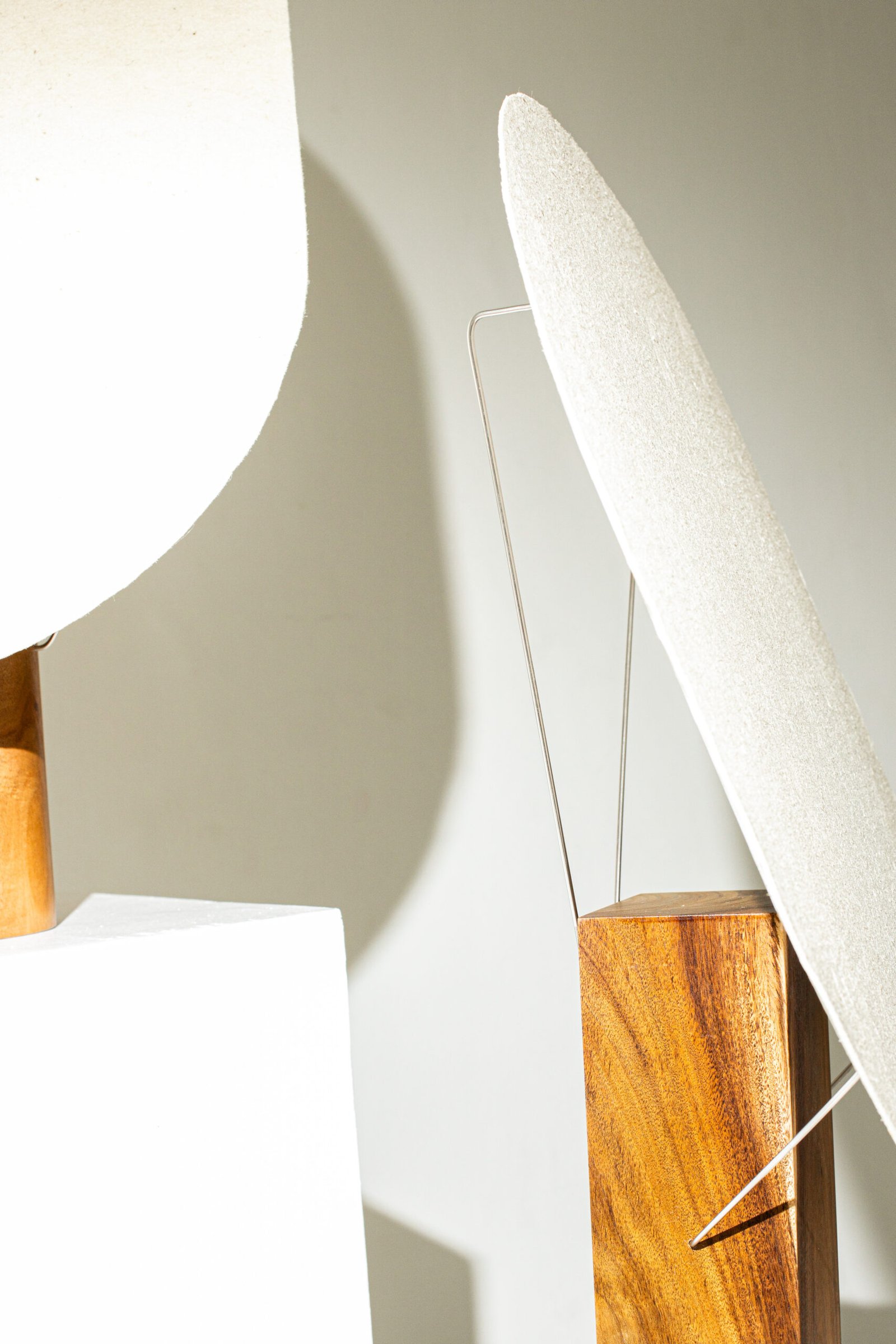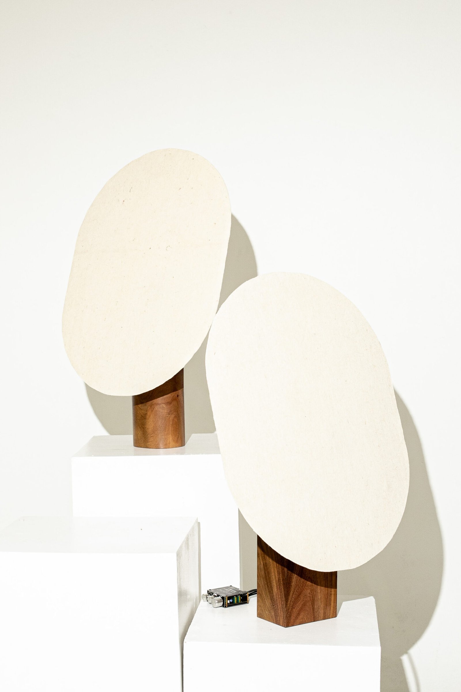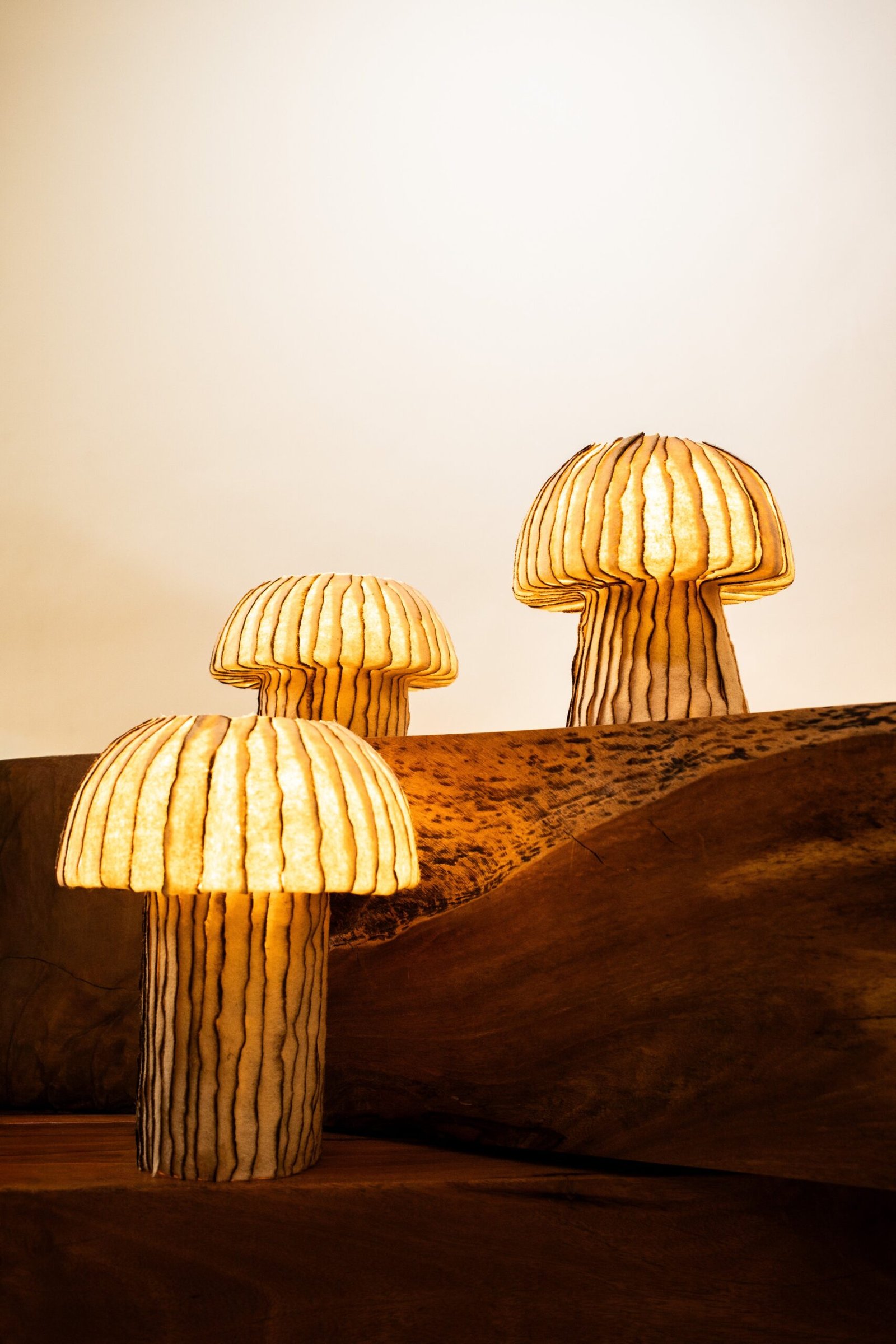 Jasser Aguila: I like how responsive the material is. It reacts beautifully when it absorbs light, when you paint it, when you touch it, and especially when you burn it. It brings the piece to life in its own way. No two lamps will end up the same, which I really love.