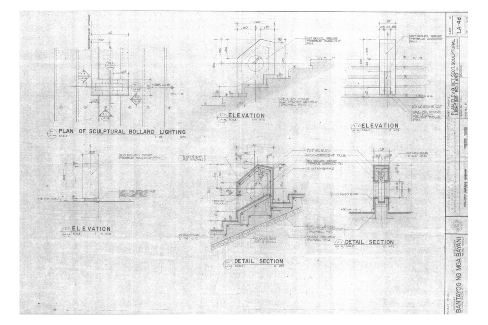 Bilaw: Honestly, the lanterns are among my favorite design elements by IP Santos within the Bantayog grounds. Over time, they’ve been neglected and forgotten. The revival of the concrete lanterns became an important point of discussion during our initial site visit. We saw that there was an existing electrical line, and it had been provisioned for them, but it no longer works. In one of my conversations with Erold, we agreed that this feature needed to be reactivated in Phase 1.