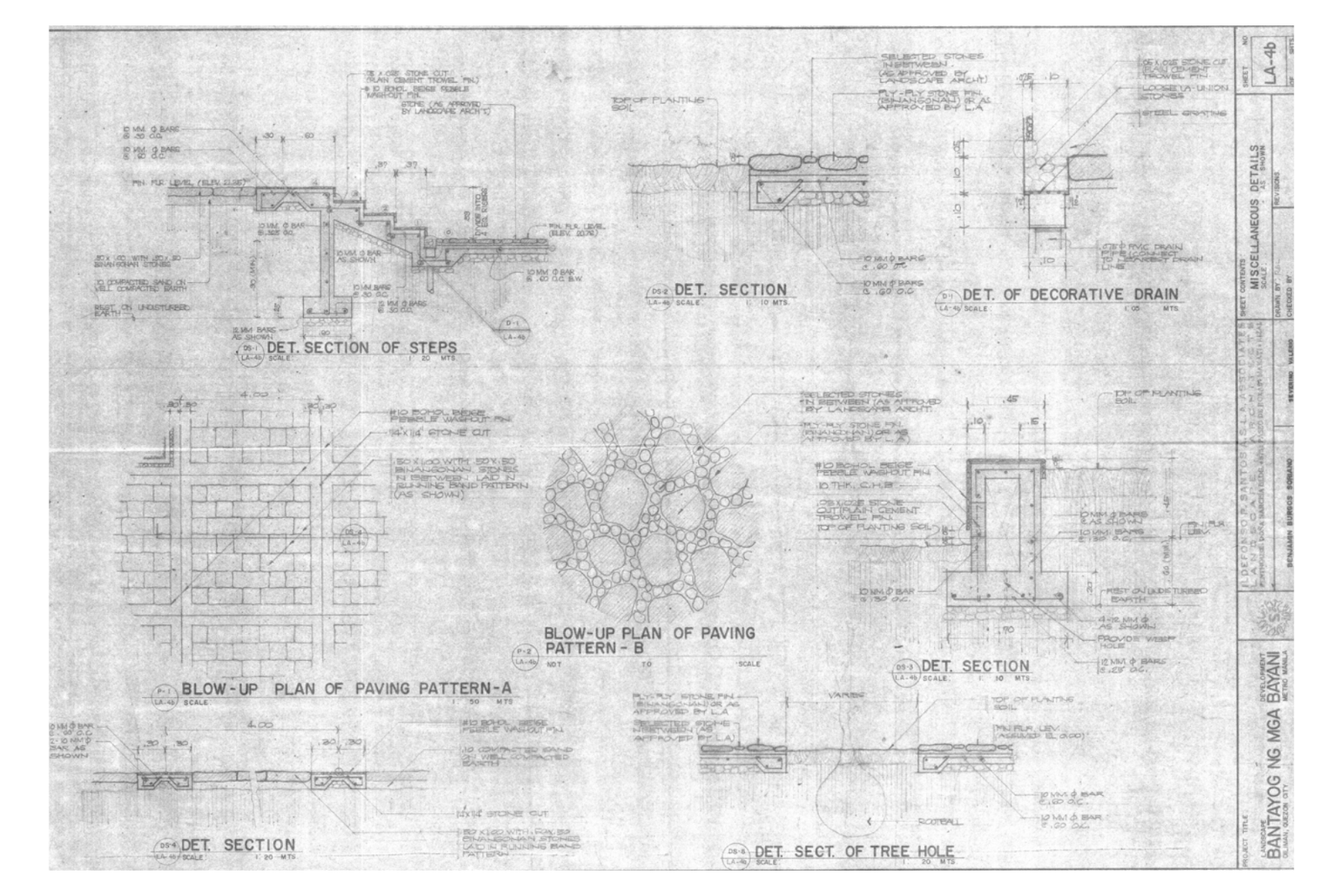 Enriquez: With the availability of the IP Santos’ archival plans, we were able to study IP’s design details, including its material specifications. One of his design characteristics is the deliberate use of indigenous/local materials. We were able to analyze specific finishes identified in the archival plans, such as Binangonan ply-ply stone, gray La Union stone, and #10 Bohol beige pebbles, among others.