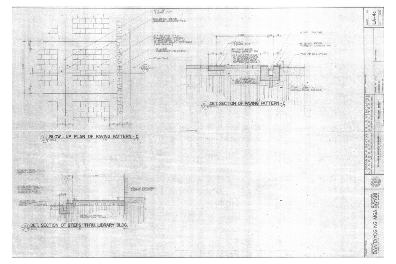 Enriquez: Since the work entails the conservation of an existing built environment, we conducted a thorough review and archival research before any intervention to examine the original design’s intent. Fortunately, the Bantayog archives retained most of IP Santos’ archival plans. We reviewed the plan elements, then triangulated the data using archival photographs and interviews. We examined the site’s context at its conceptualization in the early 1990s, when Quezon City was still undergoing major development.