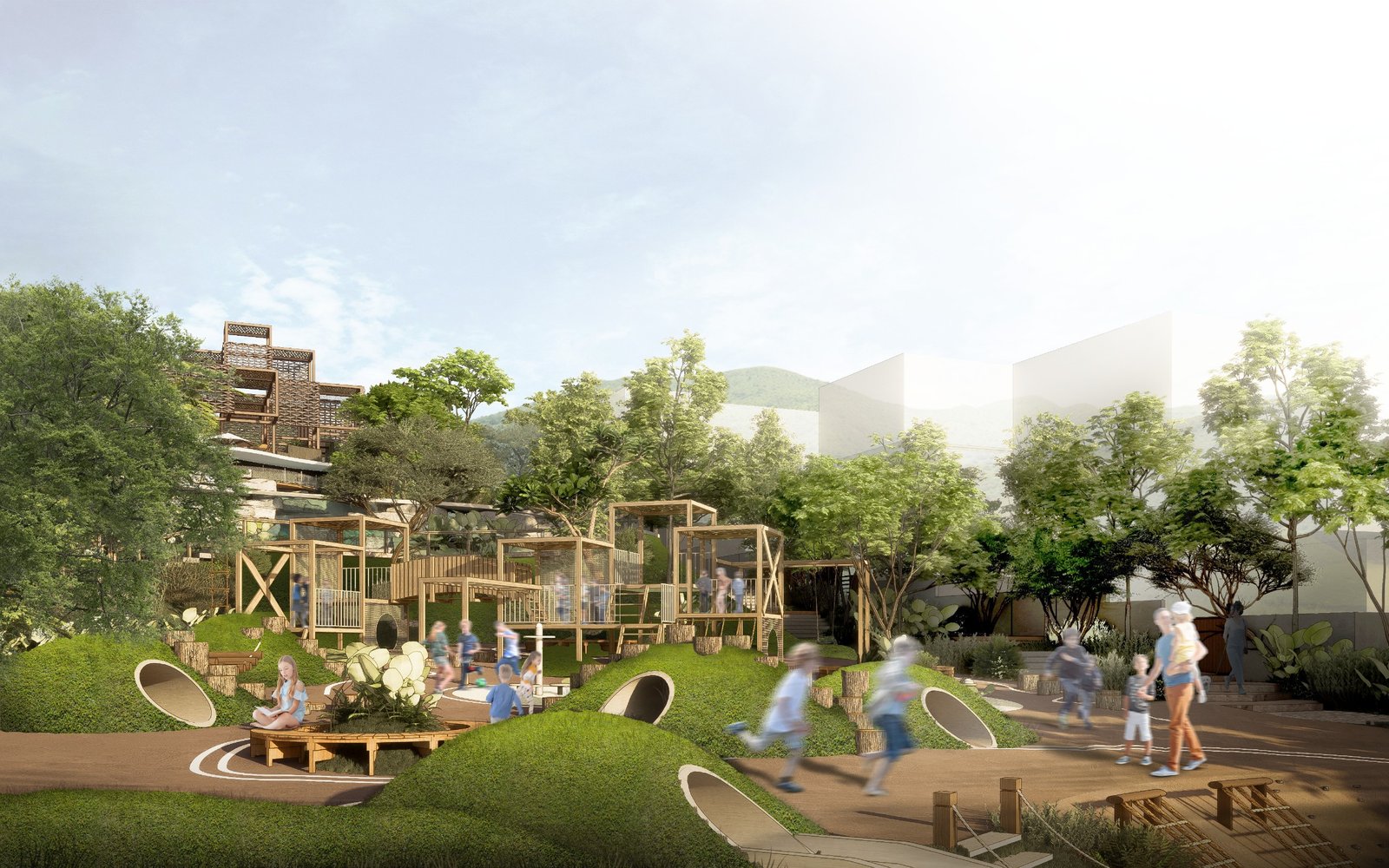 Jason Chua, principal architect of Visionary Studio Architects (VSA): Hello, Kanto! Thanks for having us! The site is located near the foot of the mountain, where the terrain is defined more by rolling hillsides than steep slopes. Recognizing this, we took great care to minimize earth movement to preserve the site’s natural stability. In critical areas where the gradient proved too steep, the land was gently regraded, and the displaced soil was repurposed to form social spaces such as the open playground and the 700-square-meter lawn, which slopes at a comfortable four-degree pitch to create a leisurely and inviting experience.