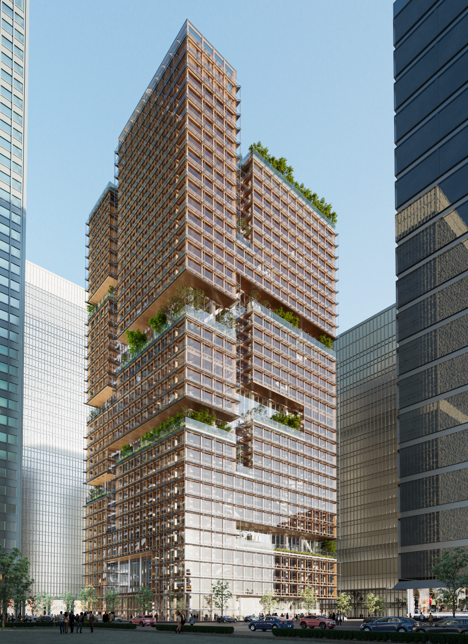 The winning project is Regenerative Tree, a next-generation skyscraper by Nikken Sekkei. The project is designed to reduce the whole life carbon cycle of the building by 40% through measures including: structural optimisation to reduce the use of steel, biomimetic technology to improve the environmental performance of MEP systems, reimagined internal transit systems to reduce energy consumption, and flexible floor plans designed to accommodate diverse workstyles and changes of use across the building’s lifecycle.