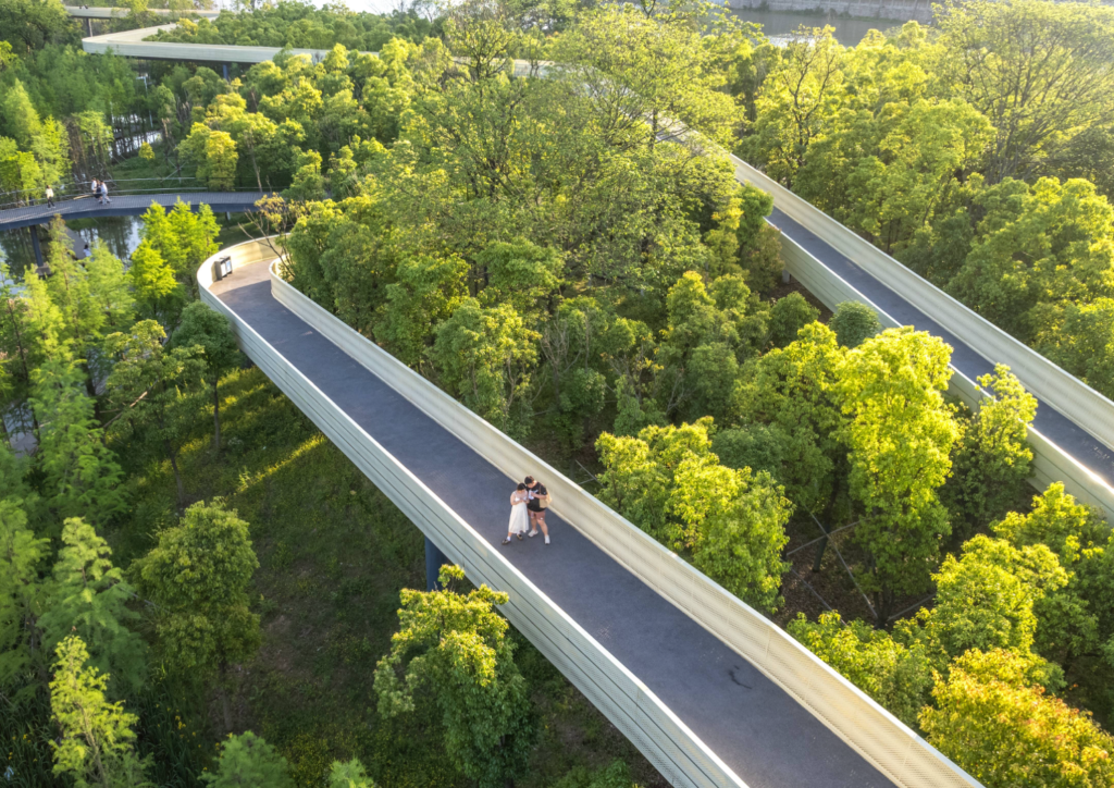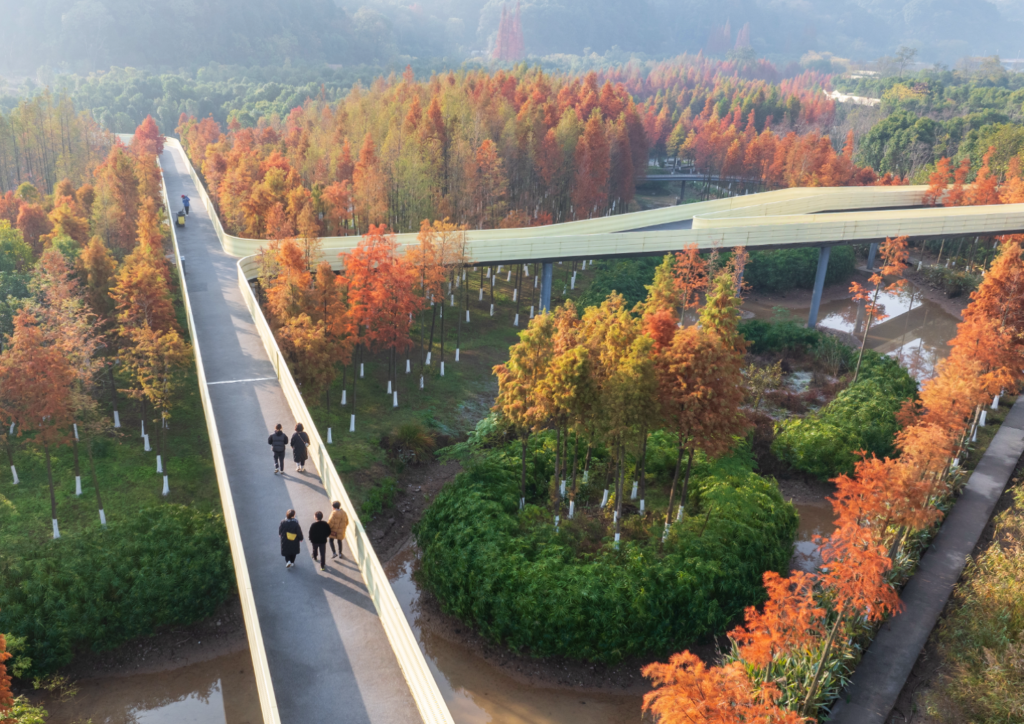 The Xinjiang River Ecological Corridor in Shangrao City revitalises a 102-hectare floodplain, transforming it into a vibrant ecological and recreational space. Utilising sponge city principles, the project enhances flood resilience, restores native habitats, and offers year-round public access. Rather than resisting seasonal floods, the design embraces water as a dynamic force, integrating it into the landscape to support biodiversity and urban resilience.