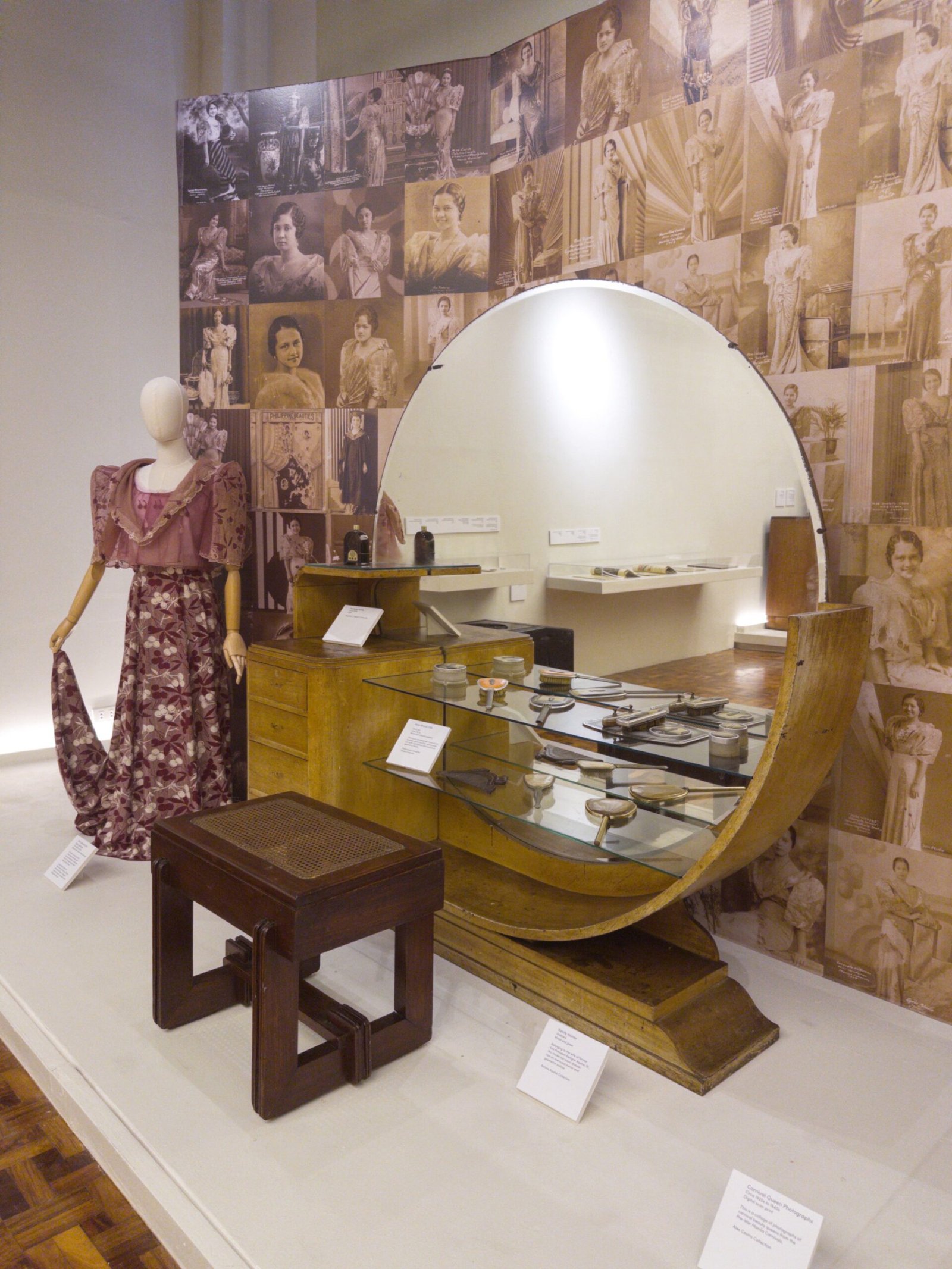 Gallery VII presents a lesser-known dimension of the movement, featuring jewelry, graphic design, fashion ephemera, and prized furniture from private collections across Metro Manila, Quezon, Pampanga, Negros Occidental, and beyond. Original 1930s ternos worn by Maria Agoncillo Aguinaldo and Doña Aurora Quezon are on display, alongside intricate bureaus, dressers, beauty implements, and industrial objects such as radios and writing paraphernalia, many of which are being exhibited publicly for the first time.