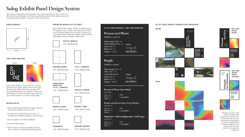 With our stellar cast of architects and spacemakers, Edson’s exhibition display system of pixelated grids, my art direction drawing from heat maps and water currents, and the indefatigable work of our writers and designers, Sulog was free to run its course and pour its message into German and international audiences, a snapshot of an architectural narrative that is ever evolving.